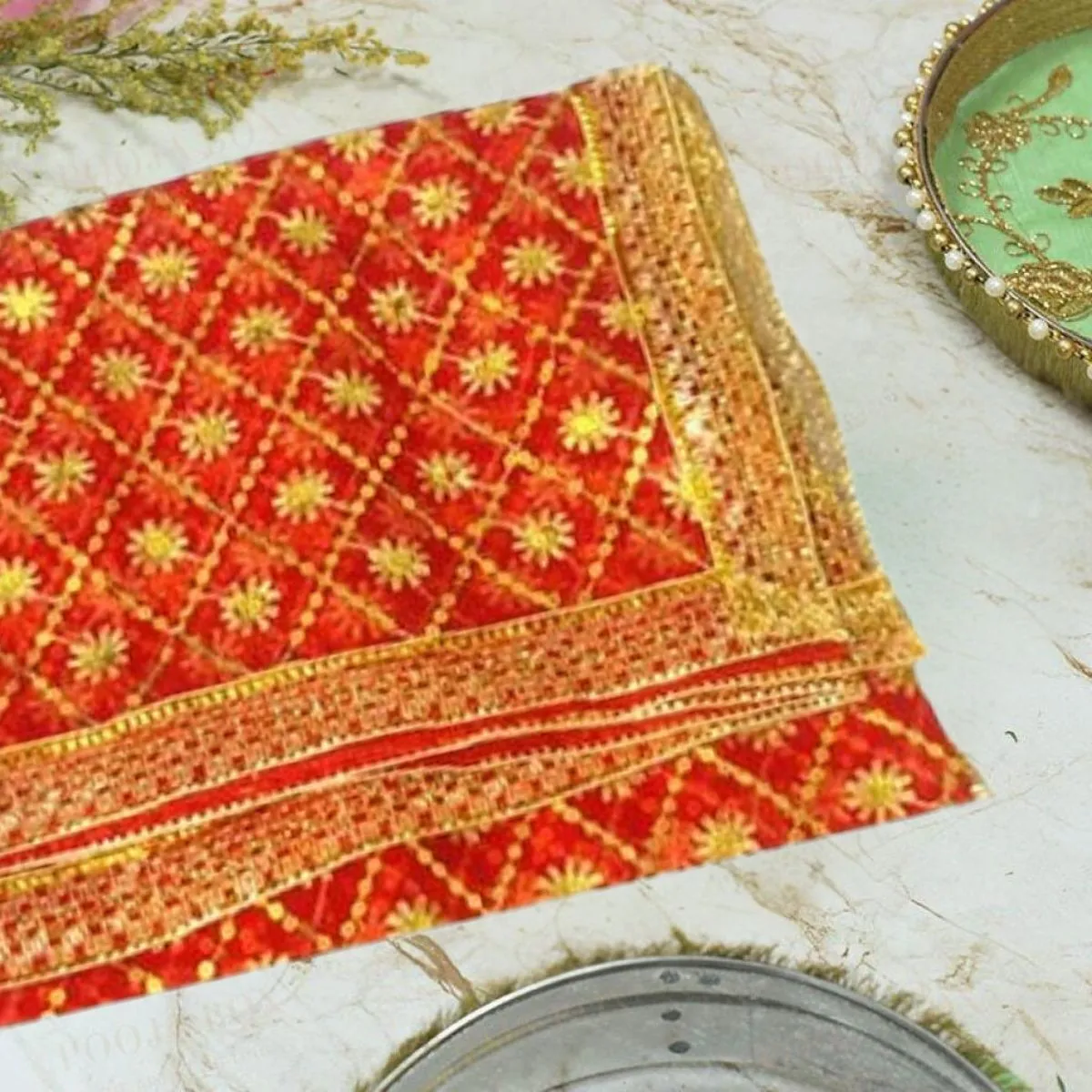 Made from high-quality fabric with traditional golden border detailing, this chunri is perfect for draping over deities, offering during prayers, or gifting during religious events.